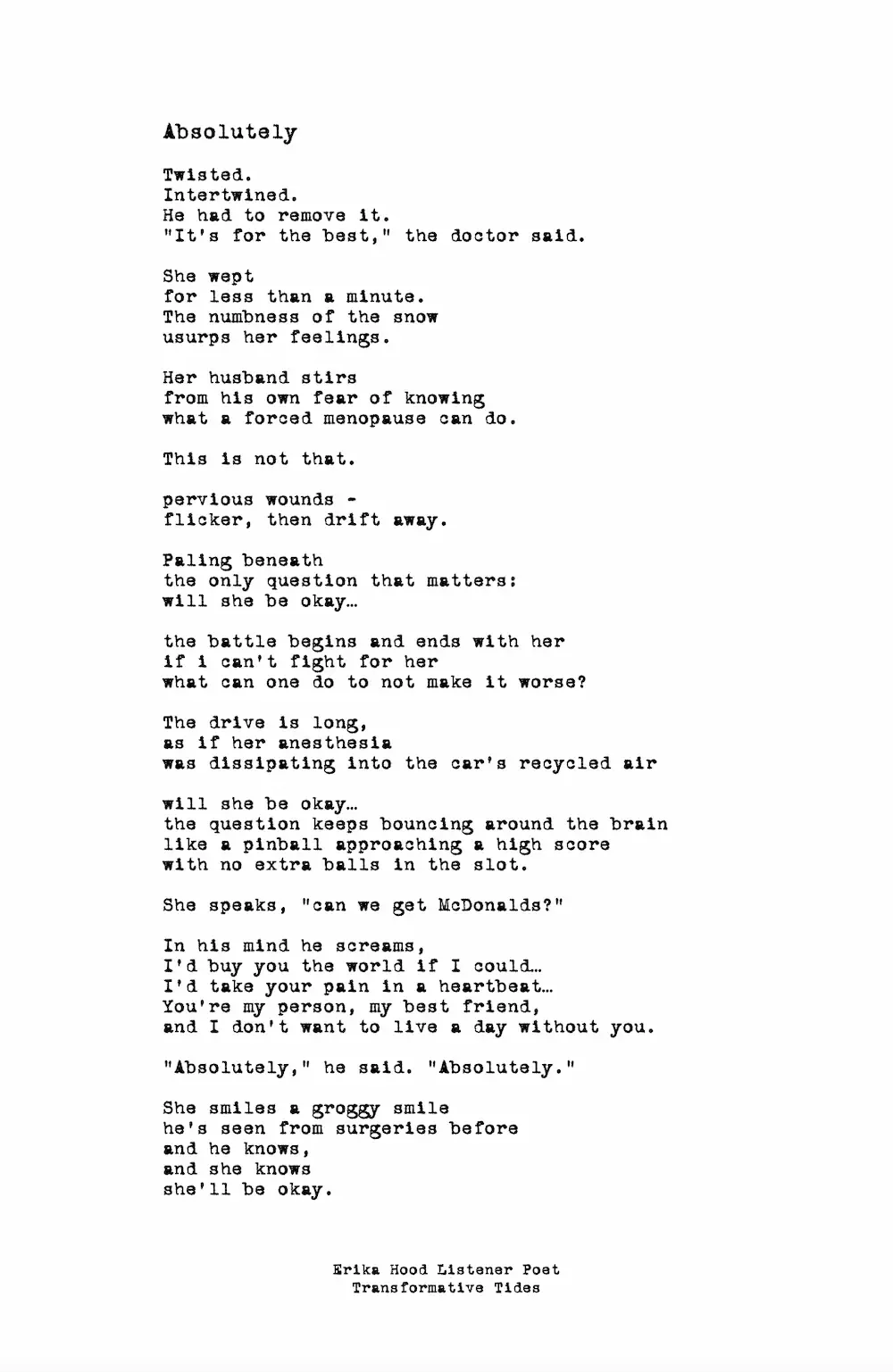 The poems shared on this page are offered with permission or written as anonymized reflections.